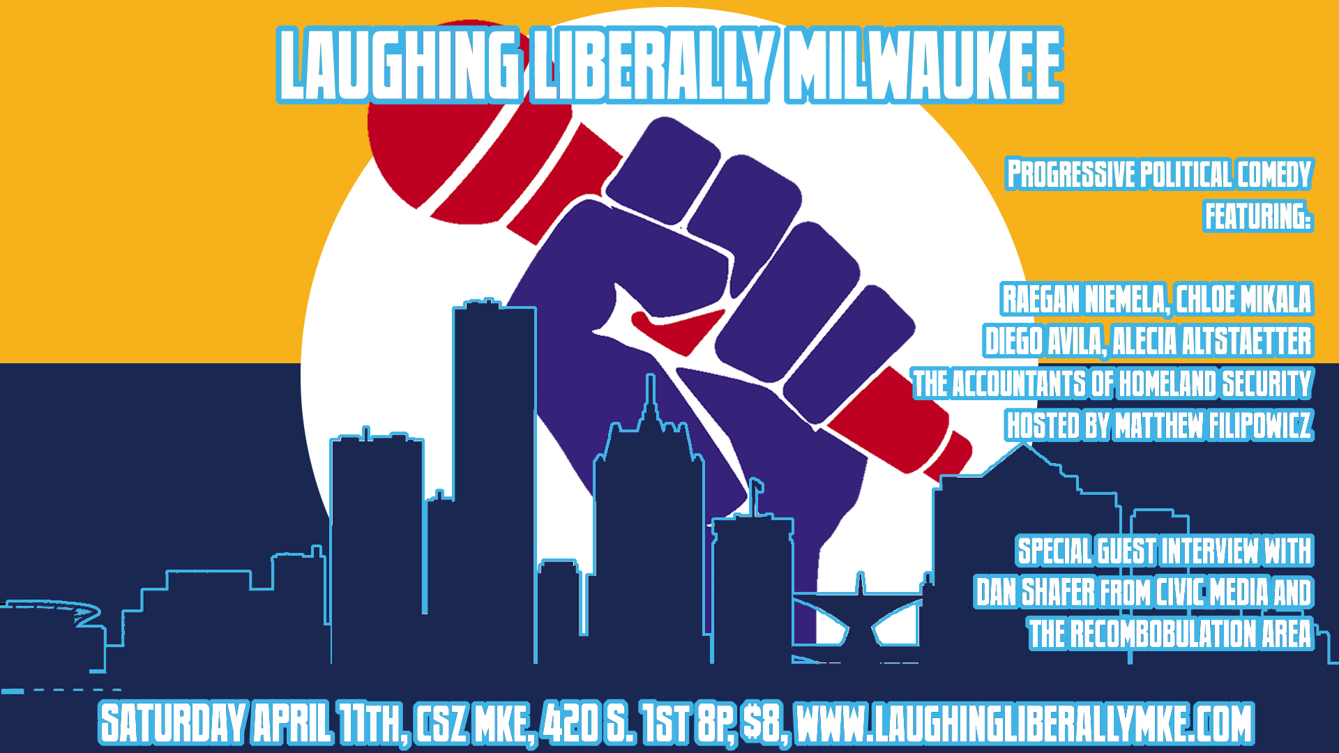 In addition to some of the finest progressive comedians Milwaukee has to offer, each Laughing Liberally Milwaukee features a special interview with a local activist, journalist, or political figure. This month’s guest is Dan Shafer from The Recombobulation Area and Civic Media.