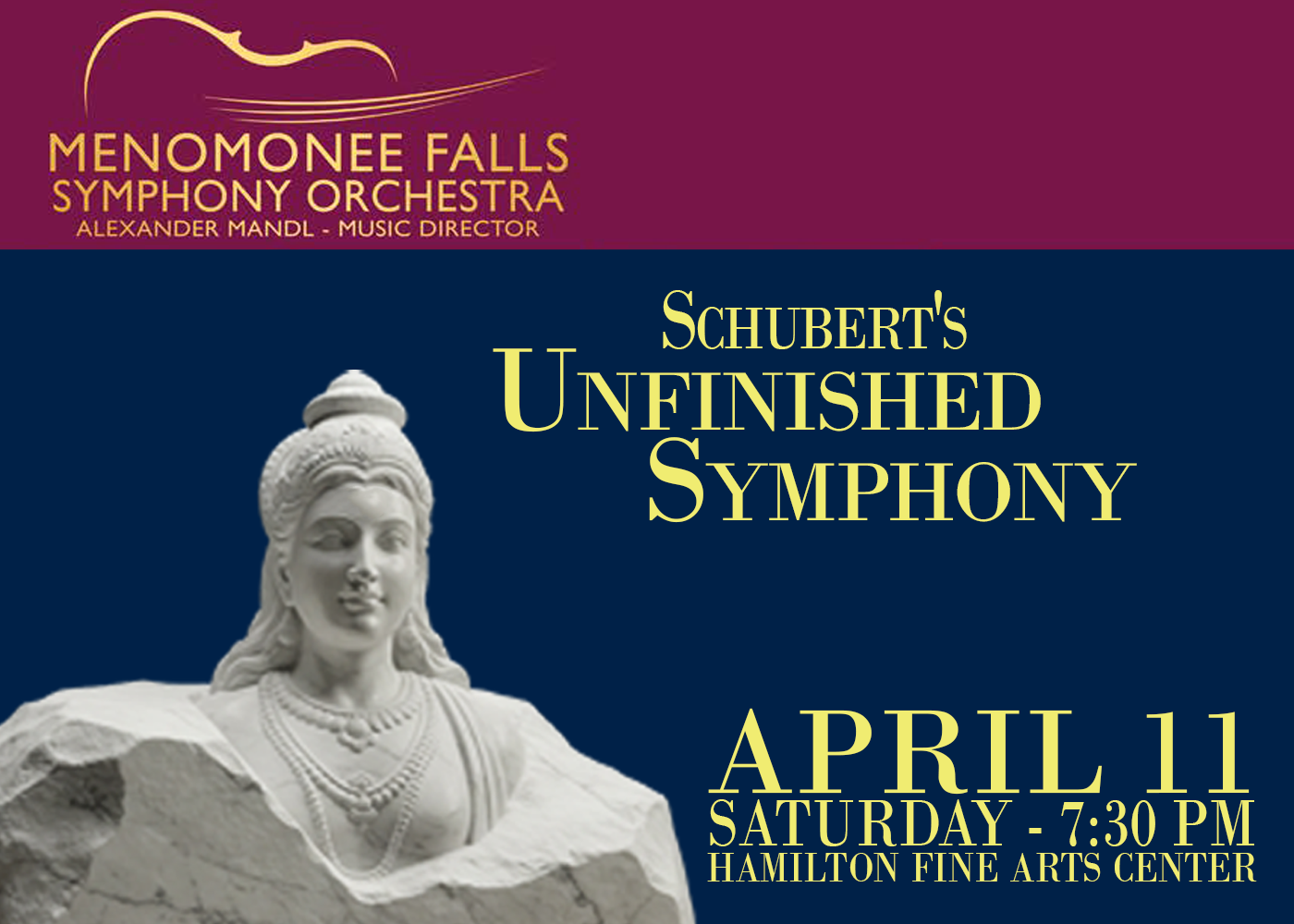Join the Menomonee Falls Symphony for a performance of Schubert’s Symphony No. 8 “Unfinished”, which remains one of the pioneering works of the Romantic Era. Also on the bill - Bizet’s delightful L’Arlsienne Suite.