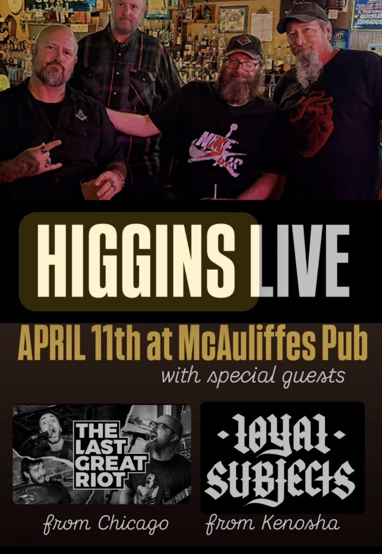 Super stoked for this beast of a show with Higgins, the Last Great Riot, and Loyal Subjects at McAuliffe's in Racine, WI!