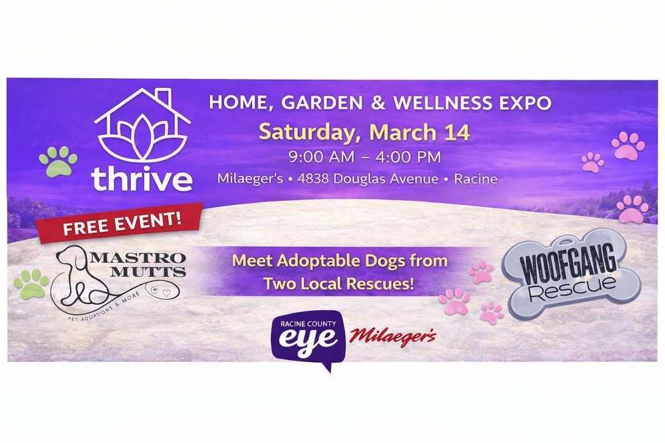 🌿 THRIVE Home, Garden & Wellness Expo 🌿 Join us for a day of inspiration, connection, and feel-good fun at the THRIVE Home, Garden & Wellness Expo on Saturday, March 14th from 9:00 AM – 4:00 PM at Milaeger’s, 4838 Douglas Avenue, Racine. Explore ideas and resources to help you thrive at home and in everyday life — from home and garden inspiration to wellness-focused vendors and local businesses. Whether you’re looking to refresh your space, support your well-being, or simply enjoy a great day out, there’s something for everyone. 🐾 Special guests: We’re excited to welcome Mastro Mutt’s and Woof Gang Rescue, who will be onsite with adoptable dogs and information on how you can support local animal rescues. Stop by, say hello, and maybe even meet your new best friend! Bring your friends, bring your family, and come spend the day discovering ways to live well, shop local, and support our community.