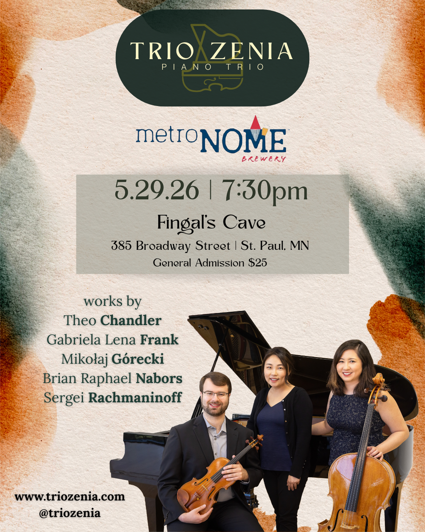 Founded in 2023, Trio Zenia formed under a shared vision of friendship, collaboration, and artistic integrity. Dedicated to bringing music to a wide variety of audiences, the trio presents concerts, workshops, and outreach programs that seek to inspire, enlighten, and spark new understandings. Currently based in Texas, Louisiana and Minnesota, the trio’s members collectively hold degrees from Rice University, San Francisco Conservatory of Music, Eastman School of Music, University of Southern California, and Yale University. The trio performs nationwide with a mission of exploring and expanding the piano trio repertoire while connecting through music to the world today.