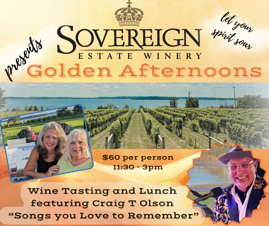 Here at Sovereign Estate we are pleased to introduce Golden Afternoons. We developed this gathering especially with our senior community in mind. We wanted to create a welcoming space where seniors can enjoy meaningful connections, relaxing conversations with the simple pleasure of spending time with family and friends, in our beautiful vineyard setting. This event will include a concert with “Songs You Love to Remember”, featuring Craig T Olson. Along with a wine tasting and lunch. The ticket cost for this event is $60. Multiple dates are available May-October. Please see the webpage link.