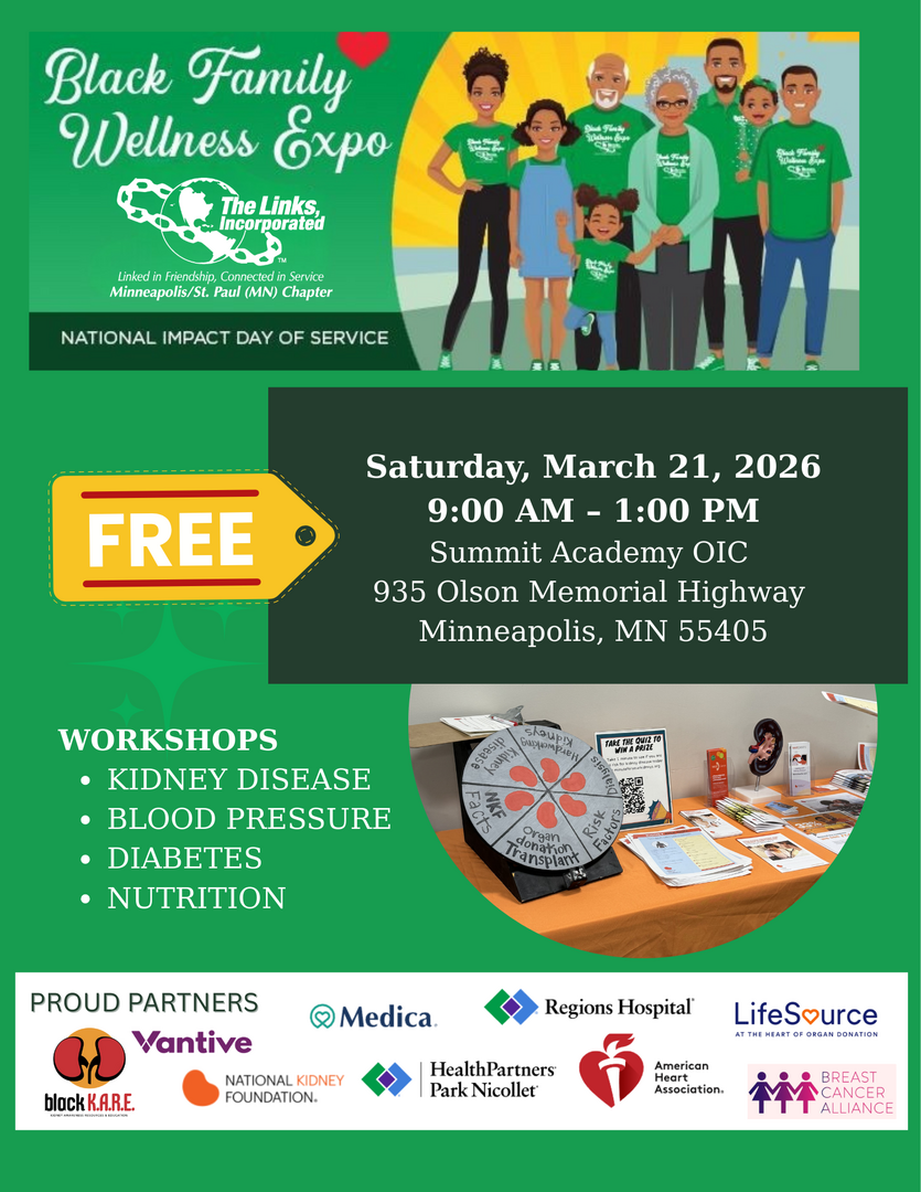 This FREE, family‐friendly expo will be filled with hands‐on learning, expert tips, and empowering conversations about kidney health, heart care, nutrition, and blood pressure management. Bring your loved ones and discover simple ways to feel better, live stronger, and take charge of your wellness.