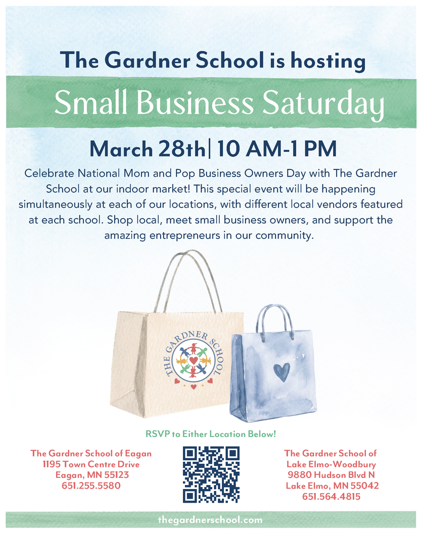 Celebrate National Mom and Pop Business Owners Day with The Gardner School at our indoor market! This special event will be happening simultaneously at each of our locations, with different local vendors featured at each school. Shop local, meet small business owners, and support the amazing entrepreneurs in our community.