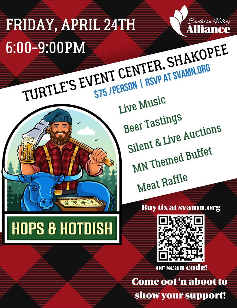 Join us for an unforgettable evening of community camaraderie at the Southern Valley Alliance's much-anticipated "Hops & Hotdish" event, set to take place on Friday, April 24, 2026 from 6 to 9 pm. This unique gathering promises an enticing blend of flavors, music, and entertainment, all while supporting a great cause.
