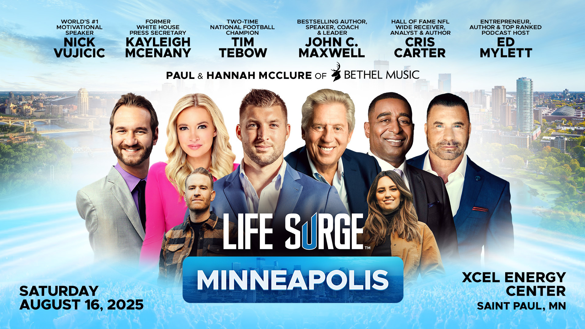 Featuring Two-time National Football Champion, Tim Tebow; the World’s #1 Motivational Speaker, Nick Vujicic; Bestselling Author, Speaker, Coach & Leader, John C. Maxwell; Hall of Fame NFL Wide Receiver, Analyst & Author, Cris Carter; Former White House Press Secretary, Kayleigh McEnany; Entrepreneur, Author, and Top Ranked Podcast Host Ed Mylett; Motivational Speakers, Authors and Entrepreneurs, The Benham Brothers; 11-time Dove Award-winning and GRAMMY® Nominated Christian Worship Collective Bethel Music; and Many More!