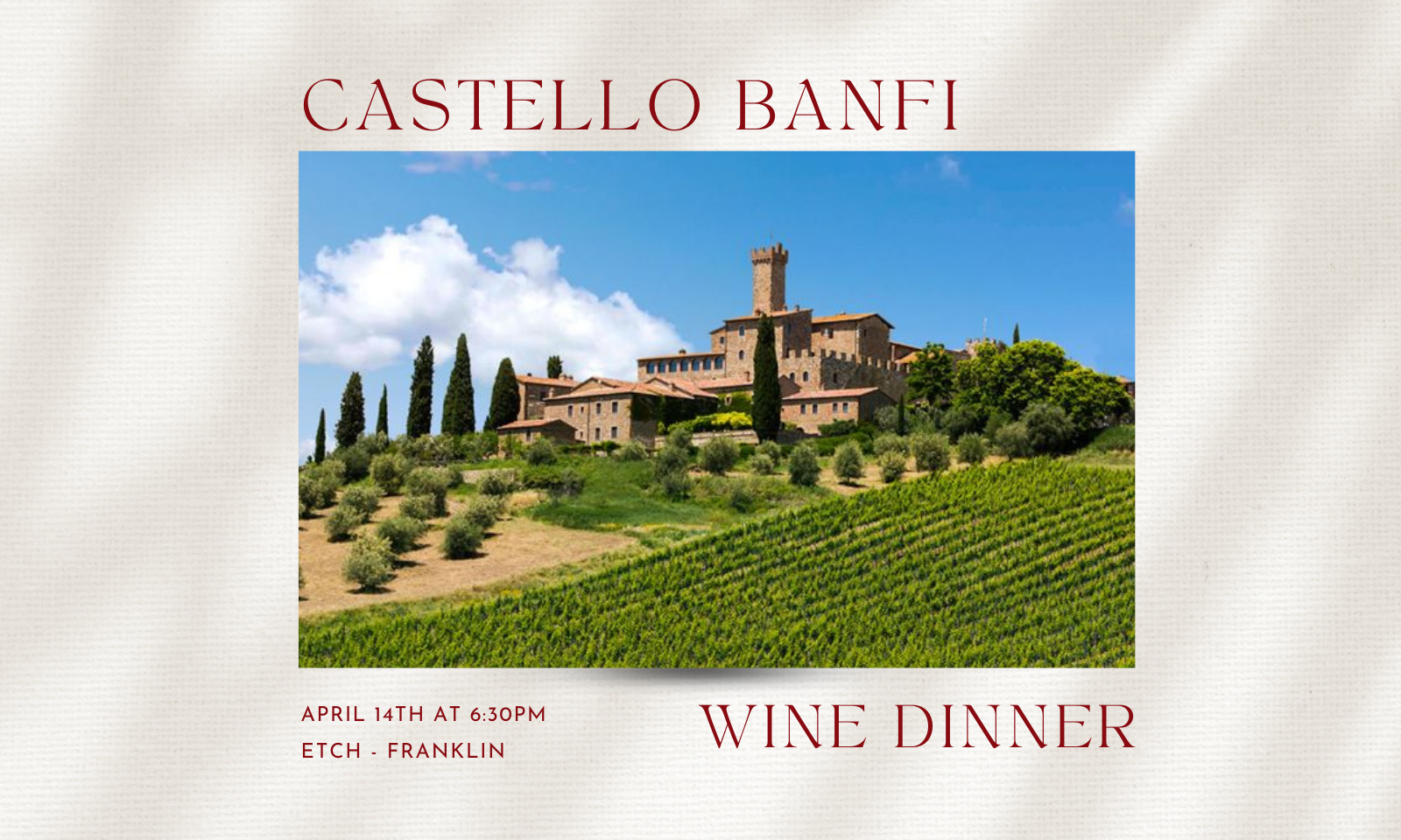 Join us at etch-Franklin for a four-course dinner featuring a selection of wines from the Castello Banfi portfolio!
