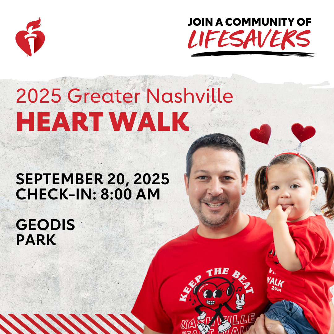 Get ready, Nashville! The Greater Nashville Heart Walk is BACK on Sept. 20 at GEODIS Park.