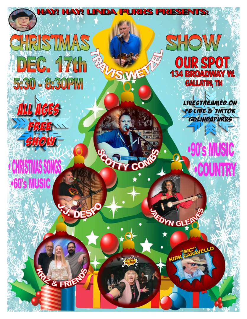Fiddle player Travis Wetzel & Guests, Christmas Songwriter Scotty Combs, 60's music by Jaedyn Gleave, 90's music by J.J. Despo.