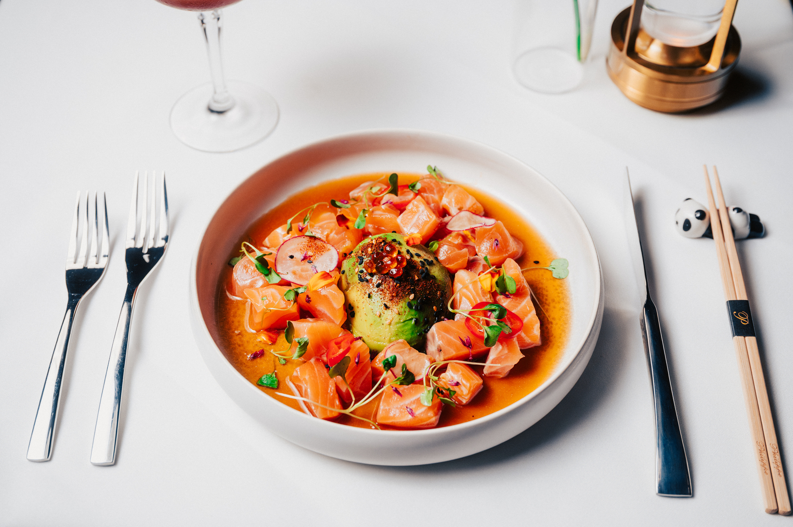 The evening will begin with a delicate Salmon Crudo, paired with Impero Pinot Grigio, followed by a fresh Pear & Arugula Salad complemented by Elemento Pinot Noir. For the main course, guests may select between Steamed Chilean Seabass Loin with Ginger and Lime Sauce, an exciting new addition to the menu, paired with William Fèvre Chablis, or a decadent Wagyu New York Strip (available for an additional $30 per person), paired with Fuga Cabernet Sauvignon.