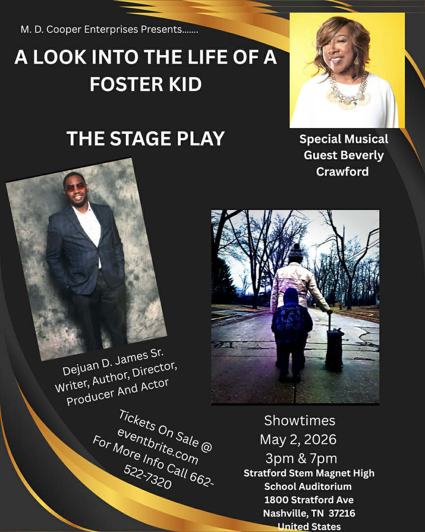 Author and Producer Mr. Dejuan D. James presents his stage play, based from his book “A Look Into the Life Of A Foster Kid.” He and his cast will bring the book to life for an experience you don’t want to miss with 2 opportunities to catch Act 1 of this stage play! Also add special musical guest Grammy and Dove Award-nominated, Stellar Award-winning gospel recording artist Pastor Beverly Crawford!