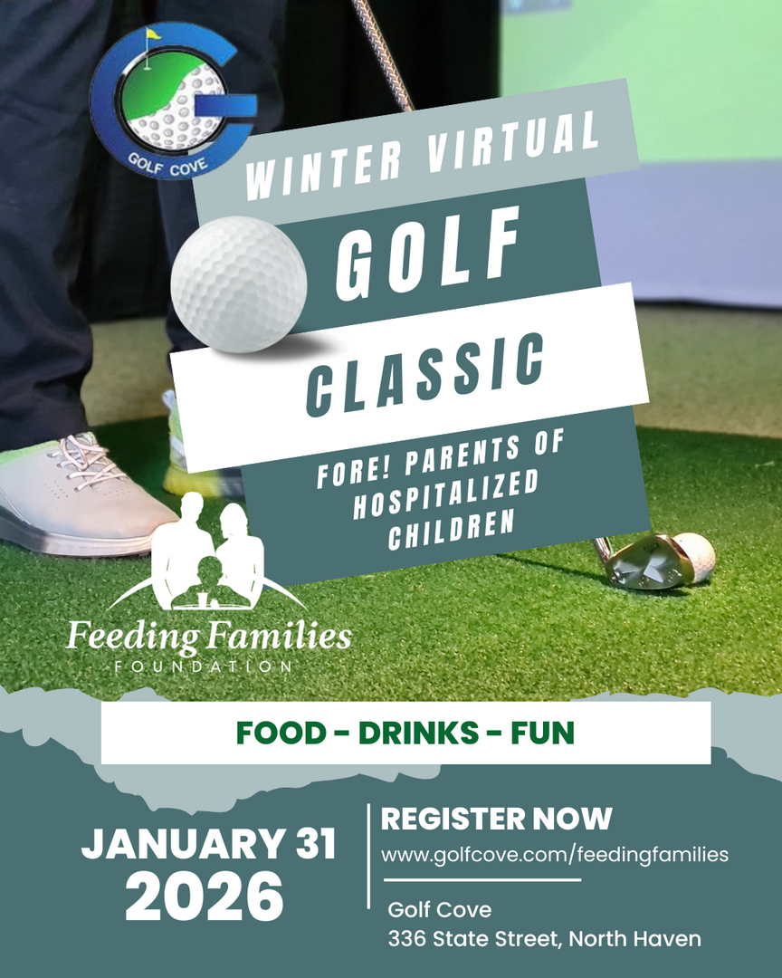 On Saturday, January 31, 2026, Feeding Families Foundation will hold its third annual “Winter Virtual Golf Classic: Fore! Parents of Hospitalized Children” at Golf Cove in North Haven. Teams of at least 4 players will play a 9-hole scramble. Tickets for golfers are $100 per person. Tickets for supporters not playing in the event are $65 per person. Open bar and food are provided for the duration of the event. There are sponsorship opportunities available for businesses. If interested, please email [email protected] to learn more.