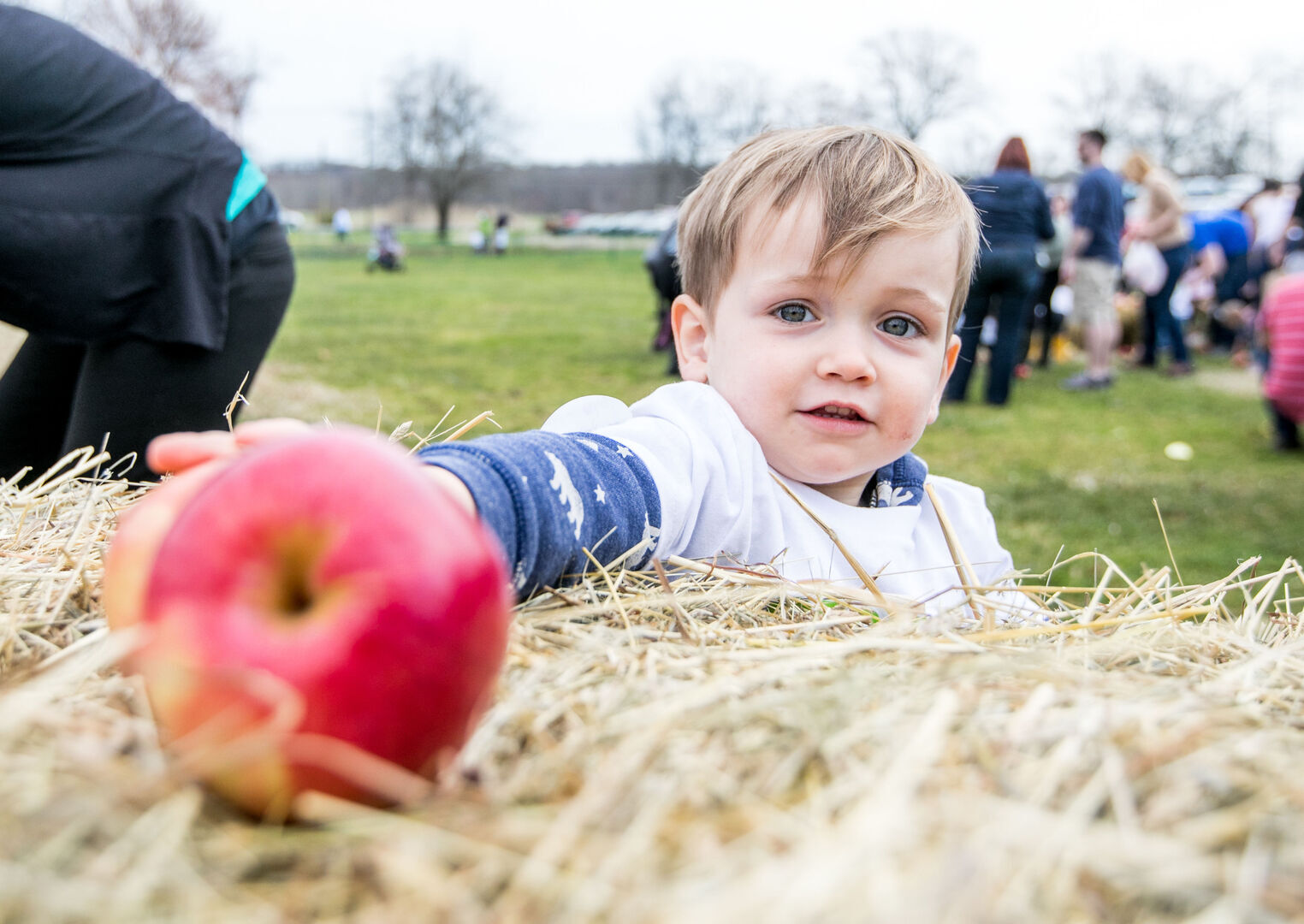 One adult may enter the Apple Hunting area with children in the 1-3 and 4-6 age groups. Adults will be asked to remain behind the starting line as the hunt begins and may join their child a few minutes later.