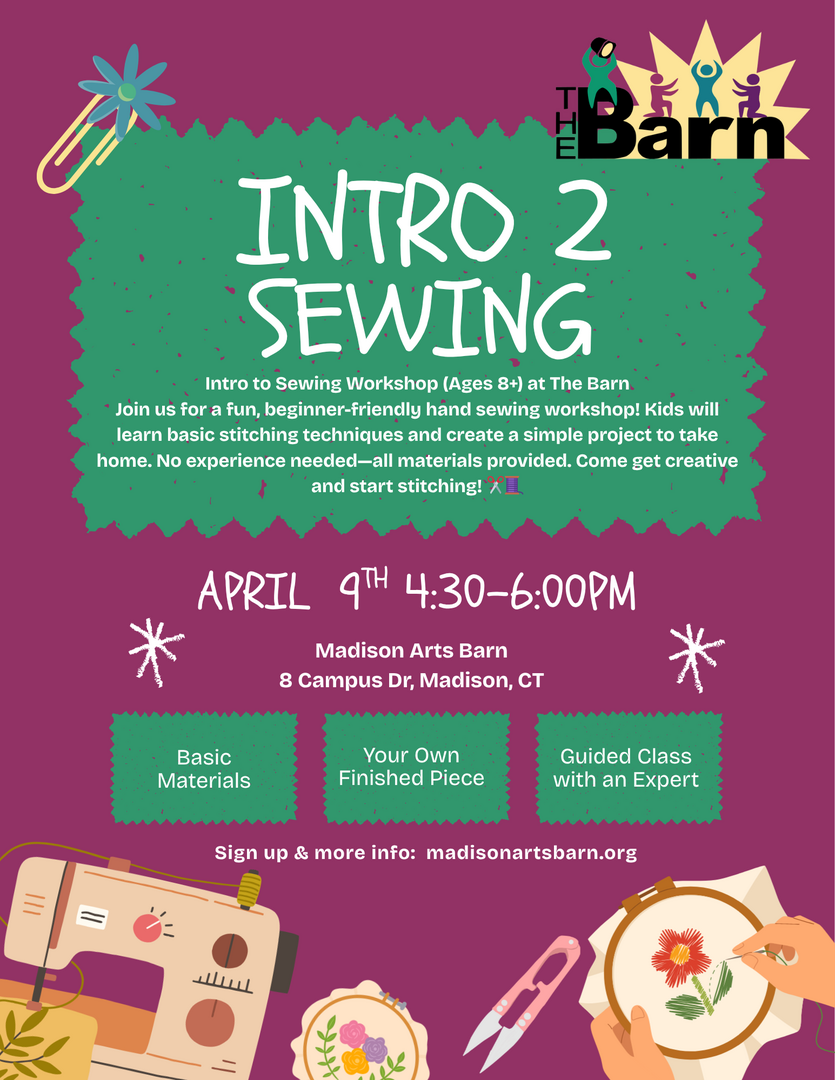 Perfect for crafty kids, future designers, or anyone curious about sewing. Come stitch, create, and have a great time at The Barn!