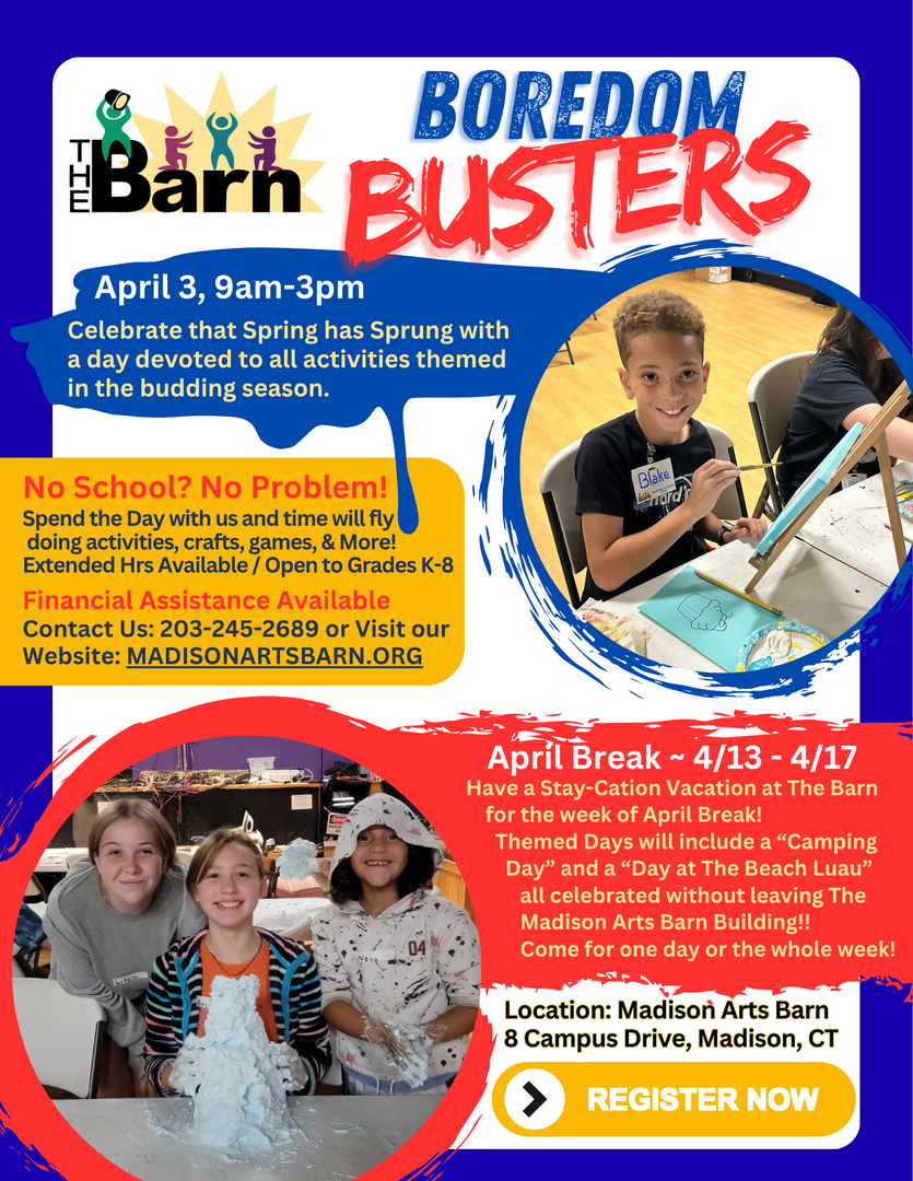 MadBarn Boredom Busters is a high-energy, one-day camp-like experience designed to turn No School days into all-day fun. From drop-off at 9:00 am to pick-up at 3:00 pm, kids rotate through a variety of engaging games, creative crafts, and hands-on activities, with plenty of options to choose from throughout the day. Whether they love to create, play, build, or just try something new, Boredom Busters keeps kids active, entertained, and smiling while parents enjoy a worry-free day of coverage. Open to kids in Kindergarten through 6th grade.