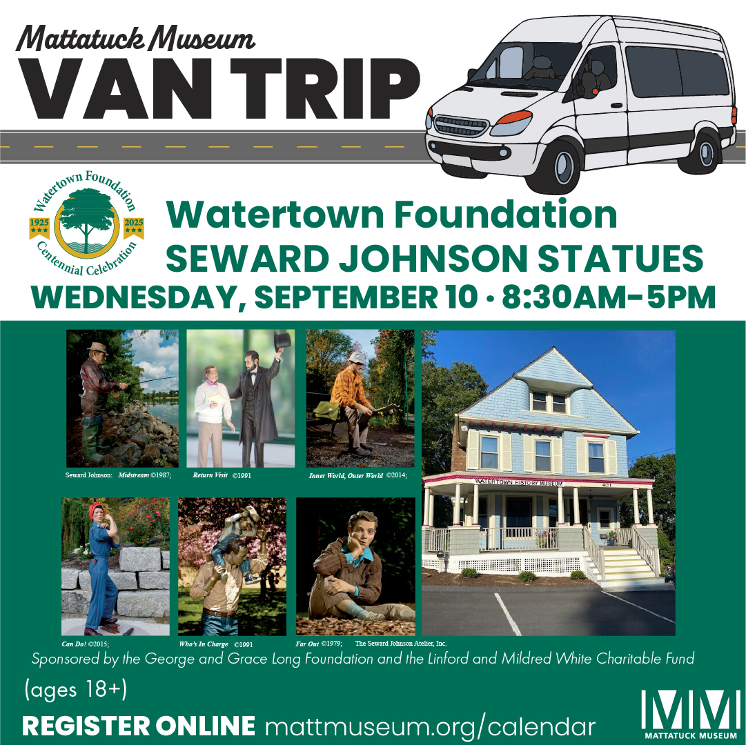 Join us for a guided tour of six Seward Johnson sculptures on temporary loan to Watertown, CT. A lunch will be included before visiting The Watertown History Museum.