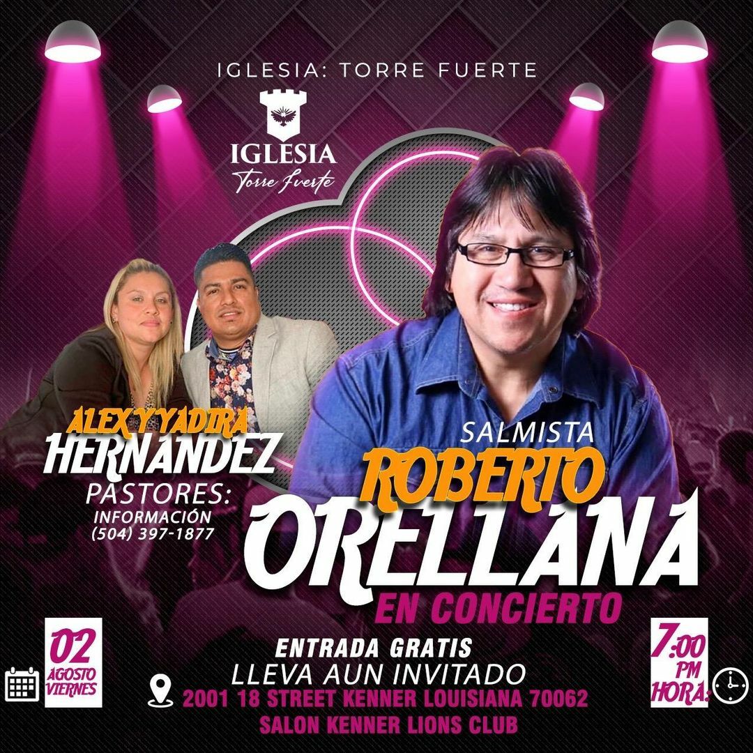 HomeEventsIGLESIA: TORRE FUERTE This Event has Passed IGLESIA: TORRE FUERTE Friday, August 02, 2024 7:00 PM - 9:00 PM 7:00 PM - 9:00 PM See all dates and Times Kenner Central Lions Club Parking Deals Get a Ride LYFT UBER Add to Calendar 08/02/2024 07:00 PM 08/02/2024 09:00 PM America/Bahia_Banderas IGLESIA: TORRE FUERTE Viernes 2 de agosto - Hora 7pm 2001 18 Street Kenner Louisiana 70062 Salon Kenner Lions Club Details & Tickets: https://www.upcomingevents.com/new-orleans/events/kenner-central-lions-club/iglesia-torre-fuerte-275719?ref=uceaddevent Kenner Central Lions Club, 2118 Kenner Avenue, Kenner, LA, 70062 Set Reminder Categories Benefits Charity, Fundraising & Charity, Neighborhood, Politics & Activism Viernes 2 de agosto - Hora 7pm 2001 18 Street Kenner Louisiana 70062 Salon Kenner Lions Club