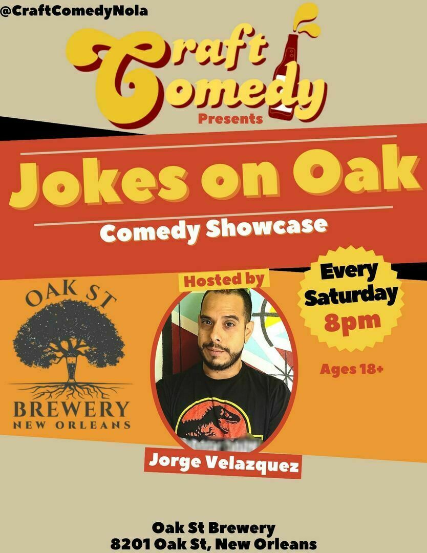 Join us at Oak St Brewery EVERY SATURDAY for a hilarious night of stand up comedy featuring New Orleans funniest comedians. Enjoy some in house brewed beer and local food pop ups and all the laughs!!!