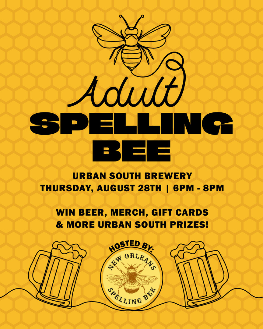 Join Urban South Brewery for an Adult Spelling Bee on Thursday, August 28 from 6:30 - 8 pm. Contestants can sign up at 6 pm. to secure a spot in the competition and put their spelling skills to the test in a fun and fast-paced showdown. The evening will feature multiple rounds of live spelling, cold beer, and lots of fun in the taproom. Winners will receive Urban South beer, merch, and gift cards.