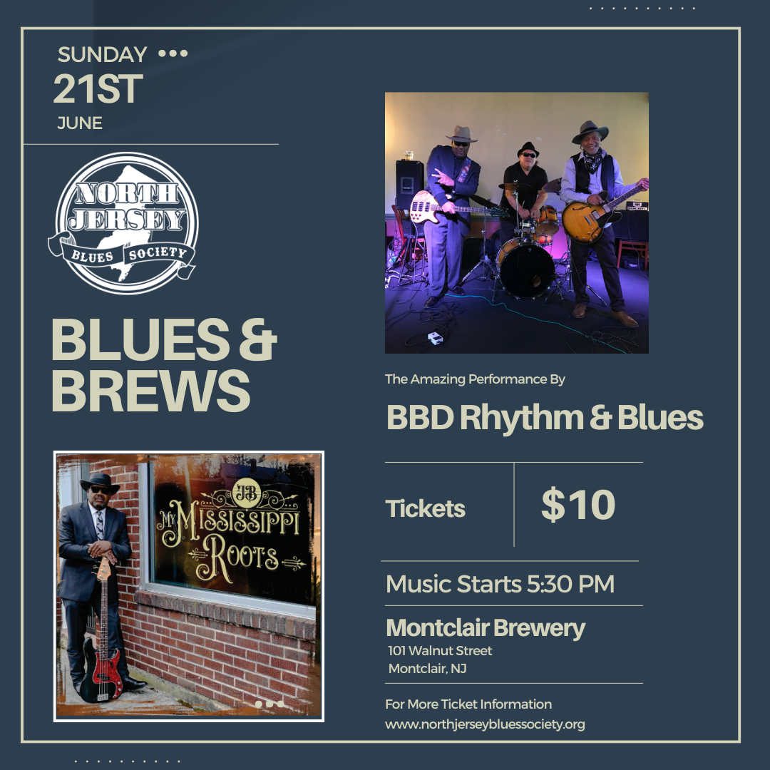 HomeEventsBBD Rhythm & Blues Band BBD Rhythm & Blues Band Sunday, June 21, 2026 5:30 PM - 8:30 PM 5:30 PM - 8:30 PM See all dates and Times Montclair Brewery Parking Deals Get a Ride LYFT UBER Add to Calendar 06/21/2026 05:30 PM 06/21/2026 08:30 PM America/Anguilla BBD Rhythm & Blues Band Join North Jersey Blues Society for the monthly Blues & Brews Series featuring BBD Rhythm & Blues BandEvent LinksTickets: https://go.evvnt.com/3559972-0 Details & Tickets: https://www.upcomingevents.com/new-york-city/events/montclair-brewery/bbd-rhythm-blues-band-629758?ref=uceaddevent Montclair Brewery, 101 Walnut Street, Montclair, NJ, 07042 Set Reminder Categories Concert, Live Performance Neighborhoods Doddtown (East Orange) Join North Jersey Blues Society for the monthly Blues & Brews Series featuring BBD Rhythm & Blues BandEvent LinksTickets: https://go.evvnt.com/3559972-0 Read More View Less
