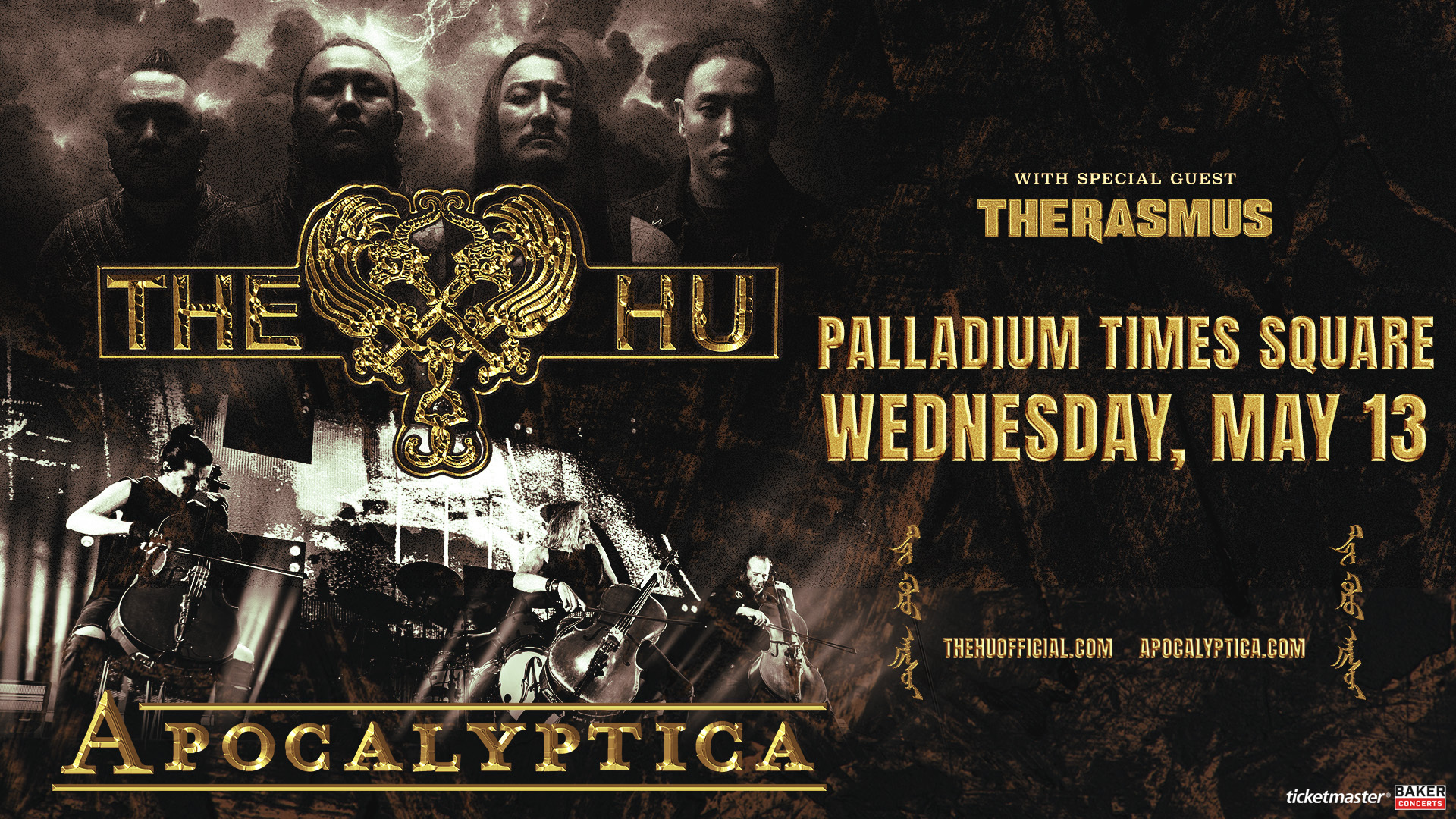 HomeEventsThe HU and Apocalyptica with special guest The Rasmus will be at Palladium Times Square in NYC The HU and Apocalyptica with special guest The Rasmus will be at Palladium Times Square in NYC Wednesday, May 13, 2026 8:00 PM - 11:00 PM 8:00 PM - 11:00 PM See all dates and Times Palladium Times Square Parking Deals Get a Ride LYFT UBER Add to Calendar 05/13/2026 08:00 PM 05/13/2026 11:00 PM America/Atikokan The HU and Apocalyptica with special guest The Rasmus will be at Palladium Times Square in NYC The HU and Apocalyptica with special guest The Rasmus will be at Palladium Times Square on May 13th, 2026.Event LinksTickets: https://go.evvnt.com/3480121-0 Details & Tickets: https://www.upcomingevents.com/new-york-city/events/palladium-times-square/the-hu-and-apocalyptica-with-special-guest-the-rasmus-will-be-at-palladium-times-square-in-nyc-601602?ref=uceaddevent Palladium Times Square, 1515 Broadway, New York, NY, 10036 Set Reminder Categories Science, Technology Neighborhoods Clinton (New York)Garment District (New York)Midtown (New York)Murray Hill (New York) The HU and Apocalyptica with special guest The Rasmus will be at Palladium Times Square on May 13th, 2026.Event LinksTickets: https://go.evvnt.com/3480121-0 Read More View Less