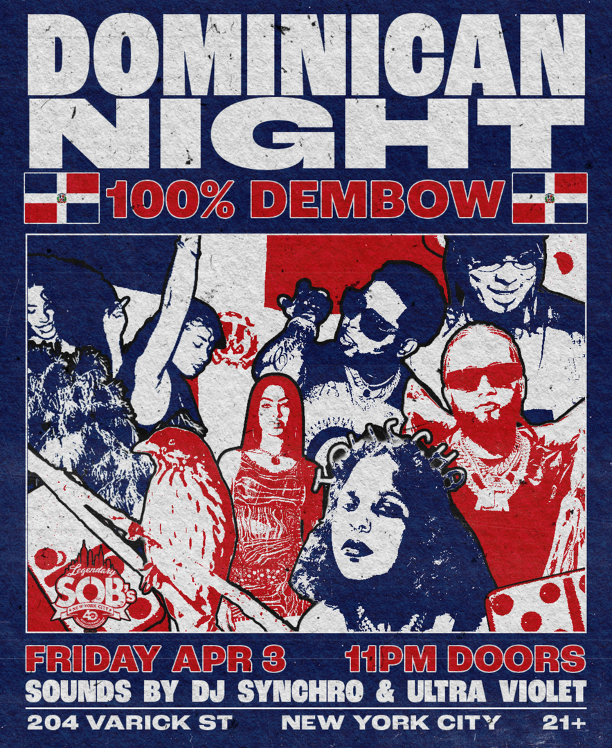 Celebrate Dominican pride at SOB’s! 100% dembow y música Dominicana all night.