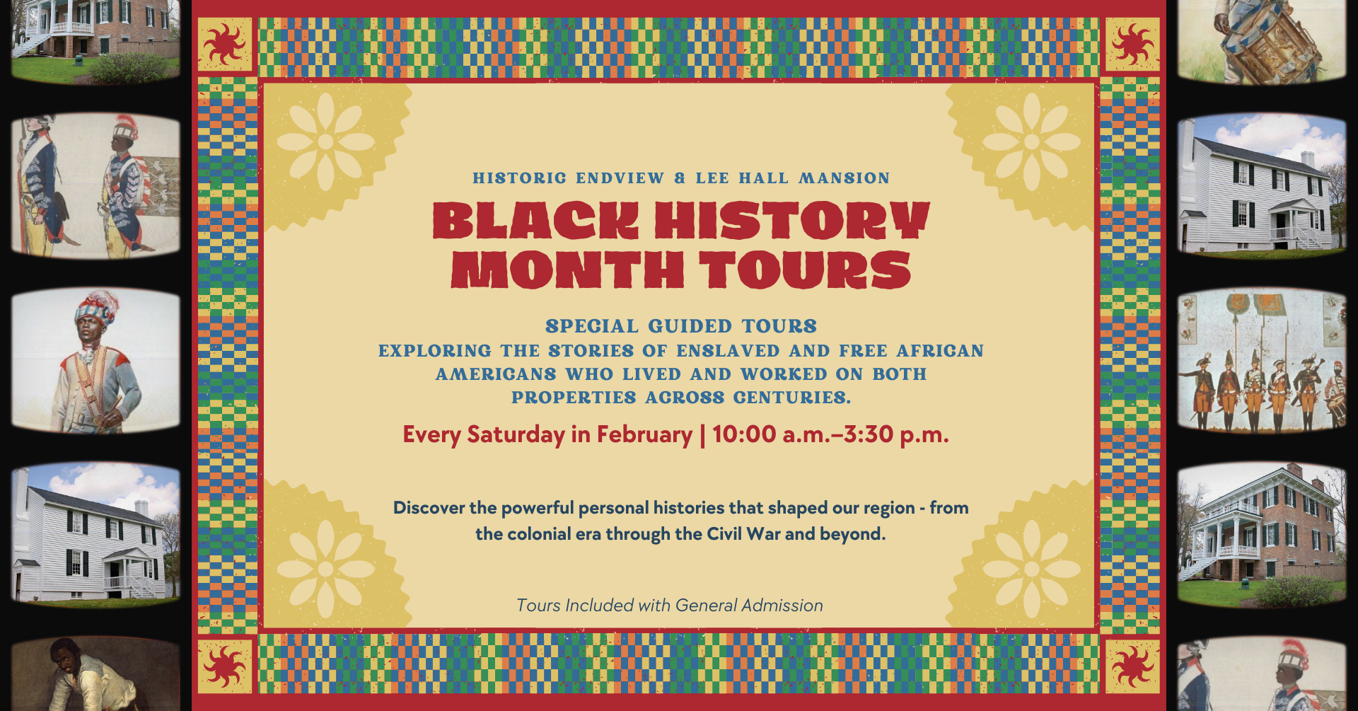 In honor of Black History Month, Historic Endview and Lee Hall Mansion will offer special guided tours each Saturday in February that highlight the experiences of enslaved and free African Americans who lived and worked on these properties over the centuries.
