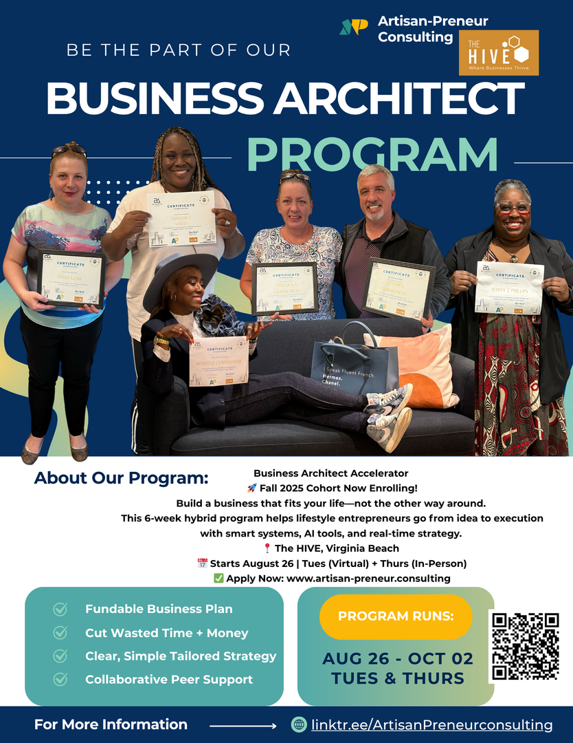 The Business Architect Accelerator is a 6-week hybrid program built for lifestyle entrepreneurs who are ready to stop dreaming and start building. Led by Tiffany Richardson-Harrell, a disabled Navy veteran and trailblazing stock car driver, this program focuses on real-time execution—no fluff, no lectures.