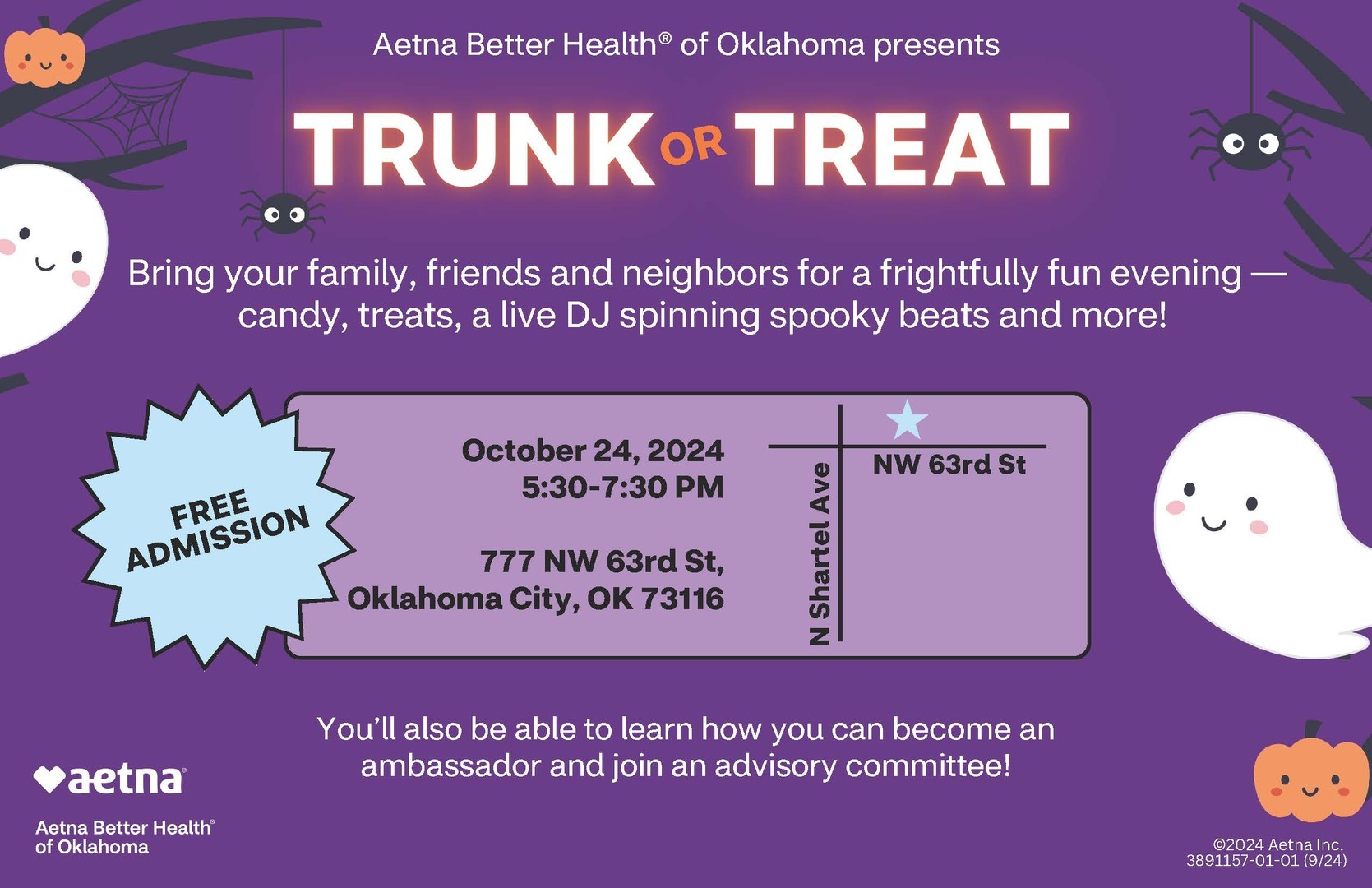 Join us at our very first Trunk or Treat! It will be a frightfully fun evening open to the community—best of all, it’s free! Plus, learn how you can become an ambassador and join an advisory committee! Put on your costumes and enjoy candy, treats and a live DJ spinning spooky beats.