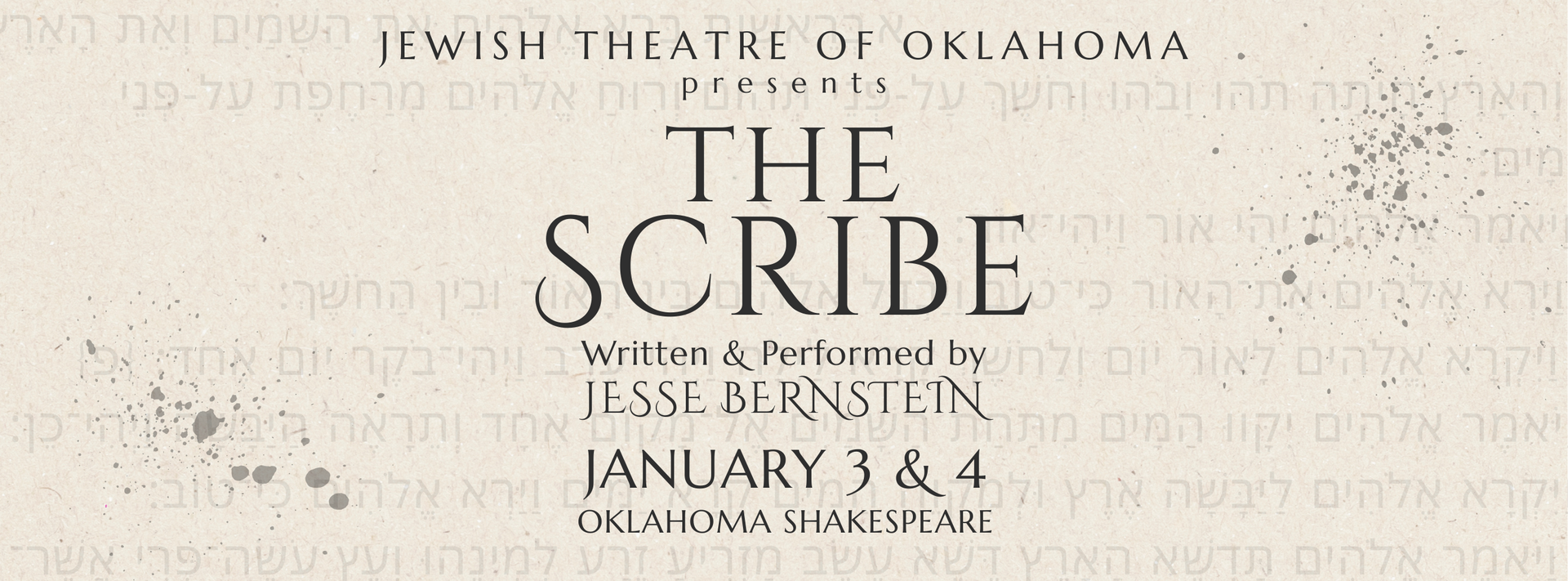 The Scribe, written and performed by playwright and actor Jesse Bernstein, returns to the Jewish Theatre of Oklahoma for an exclusive reprise engagement at Oklahoma Shakespeare on January 3 at 8:00 pm and January 4 at 2:00 pm and 7:00 pm. This riveting one-man show was an audience favorite in a previous season and now offers theatergoers a rare chance to experience Bernstein’s unforgettable storytelling live on stage. Presented in Oklahoma Shakespeare’s intimate indoor theatre at 2920 Paseo in Oklahoma City’s Paseo Arts District, The Scribe is included in Jewish Theatre of Oklahoma’s Scene Partners and Producers Club subscriptions or available as a premium single ticket for $50