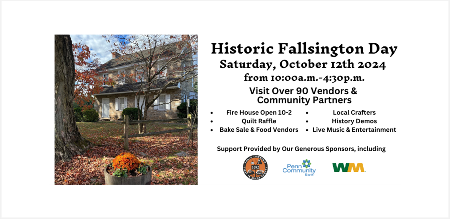 Enjoy the many family-friendly activities including live music, historical demonstrations, & participation from many community partners. Don't forget to visit the entire village to purchase some homemade crafts, buy new & used books, tour the historic museum buildings & other places in town, purchase a homemade treat or two, & enter for a chance to win a handmade quilt. Parking: Fallsington Elementary School.