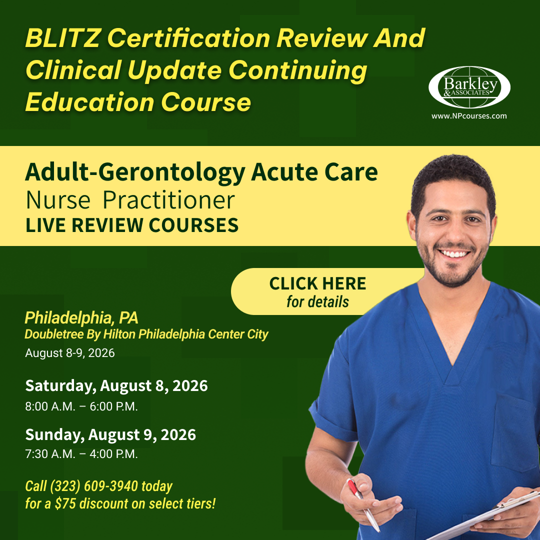 The Adult-Gerontology Acute Care Nurse Practitioner (AGACNP) BLITZ Certification Review & Clinical Update is a comprehensive 2-day in-person training program taking place in Philadelphia on August 8–9, 2026.