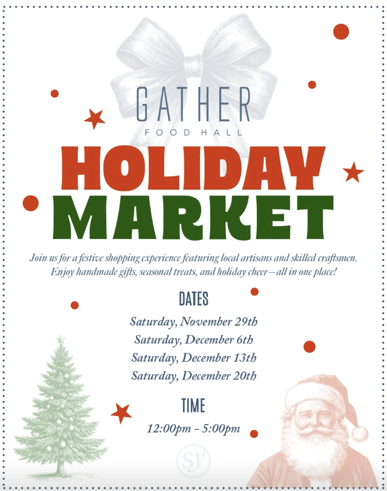 Looking for Saturday plans and last-minute Christmas gifts? Gather Food Hall (@gatherfoodhallphilly), located in the historic Bulletin Building in Schuylkill Yards, is hosting its final local-vendor holiday market of the year this Saturday, December 20, from 12–5 PM