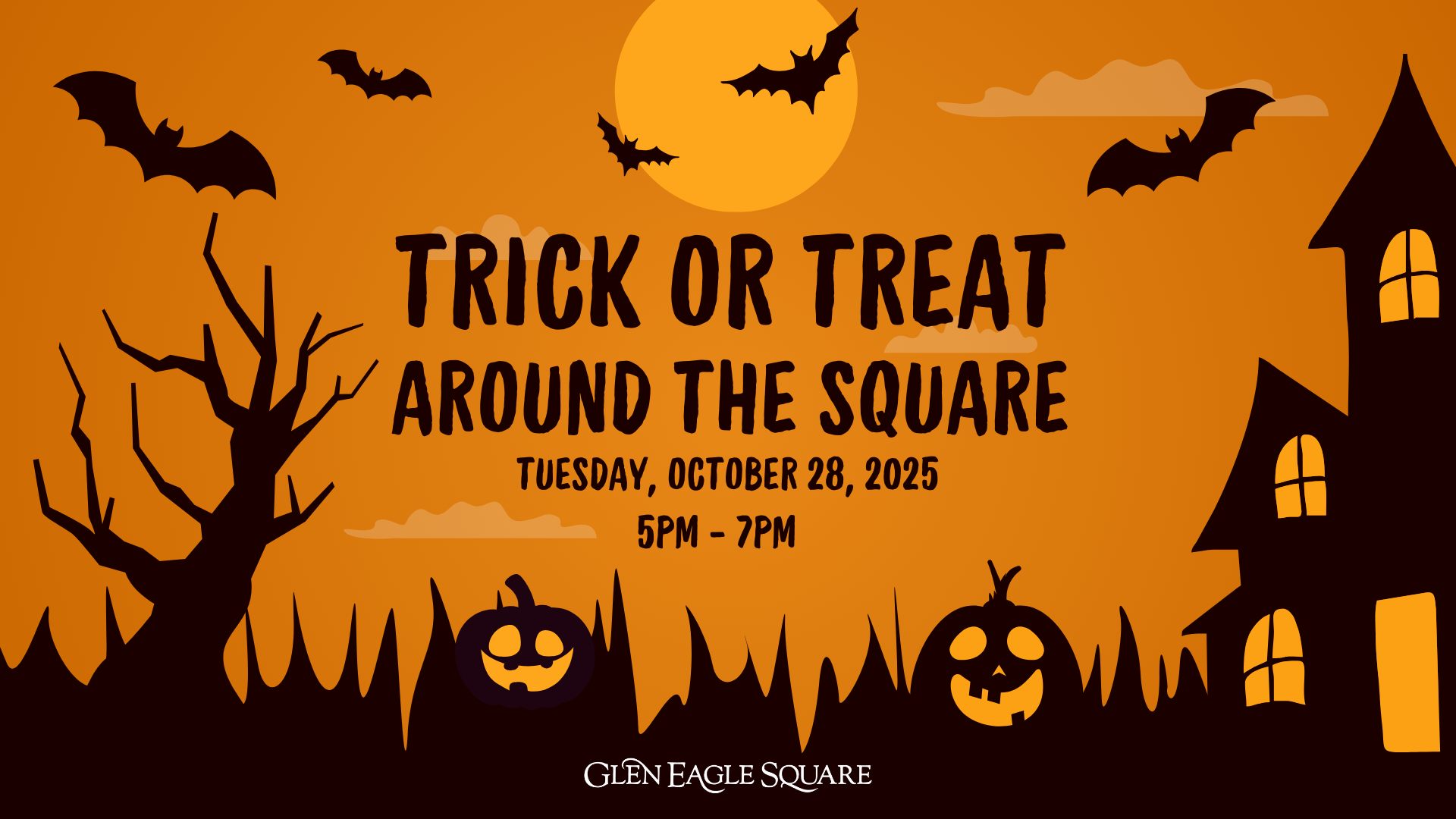 Join us for a spooktacular evening at Glen Eagle Square! Families and friends are invited to celebrate Halloween with Trick or Treat Around the Square, a festive night of candy, costumes, and community fun.