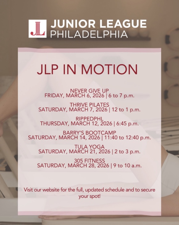 Join the Junior League of Philadelphia (JLP) on March 12, 2026 at 6:45 p.m. for an energizing sculpting class. With a mix of strength training, pilates, and yoga, you are guaranteed to leave feeling satisfied and accomplished. Registration is $31, with class spots limited. In honor of Women’s History Month, proceeds from this series will support the JLP’s programs advancing women’s leadership and community impact in Greater Philadelphia.