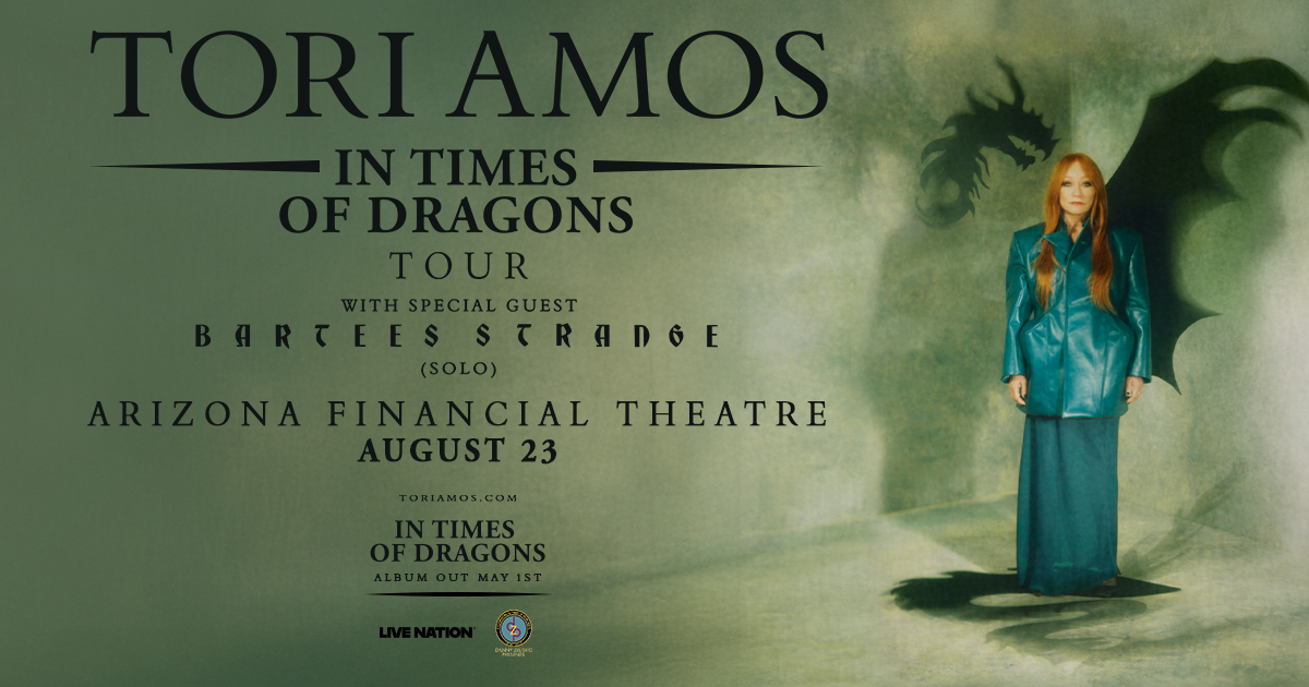 HomeEventsTori Amos with Bartees Strange Tori Amos with Bartees Strange Sunday, August 23, 2026 7:00 PM - 9:00 PM 7:00 PM - 9:00 PM See all dates and Times Arizona Financial Theatre Parking Deals Get a Ride LYFT UBER Add to Calendar 08/23/2026 07:00 PM 08/23/2026 09:00 PM America/Boise Tori Amos with Bartees Strange Tori Amos with Bartees Strange @ Arizona Financial Theatre on August 23.Event LinksTickets: https://go.evvnt.com/3583646-0 Details & Tickets: https://www.upcomingevents.com/phoenix/events/arizona-financial-theatre/tori-amos-with-bartees-strange-638560?ref=uceaddevent Arizona Financial Theatre, 400 West Washington Street, Phoenix, AZ, 85003 Set Reminder Categories Concert, Live Performance Tori Amos with Bartees Strange @ Arizona Financial Theatre on August 23.Event LinksTickets: https://go.evvnt.com/3583646-0
