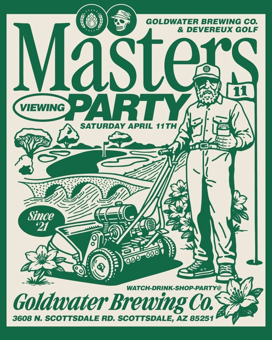 Goldwater Brewing Co. & Devereux Golf's 5th Annual Masters Viewing Party is BACK on Saturday, April 11th! We’re going even bigger this year, taking over the parking lot at Goldwater Brewing Co. Scottsdale for a full Country Club experience. Cold beer, loud music, killer food, and the tournament on every screen.