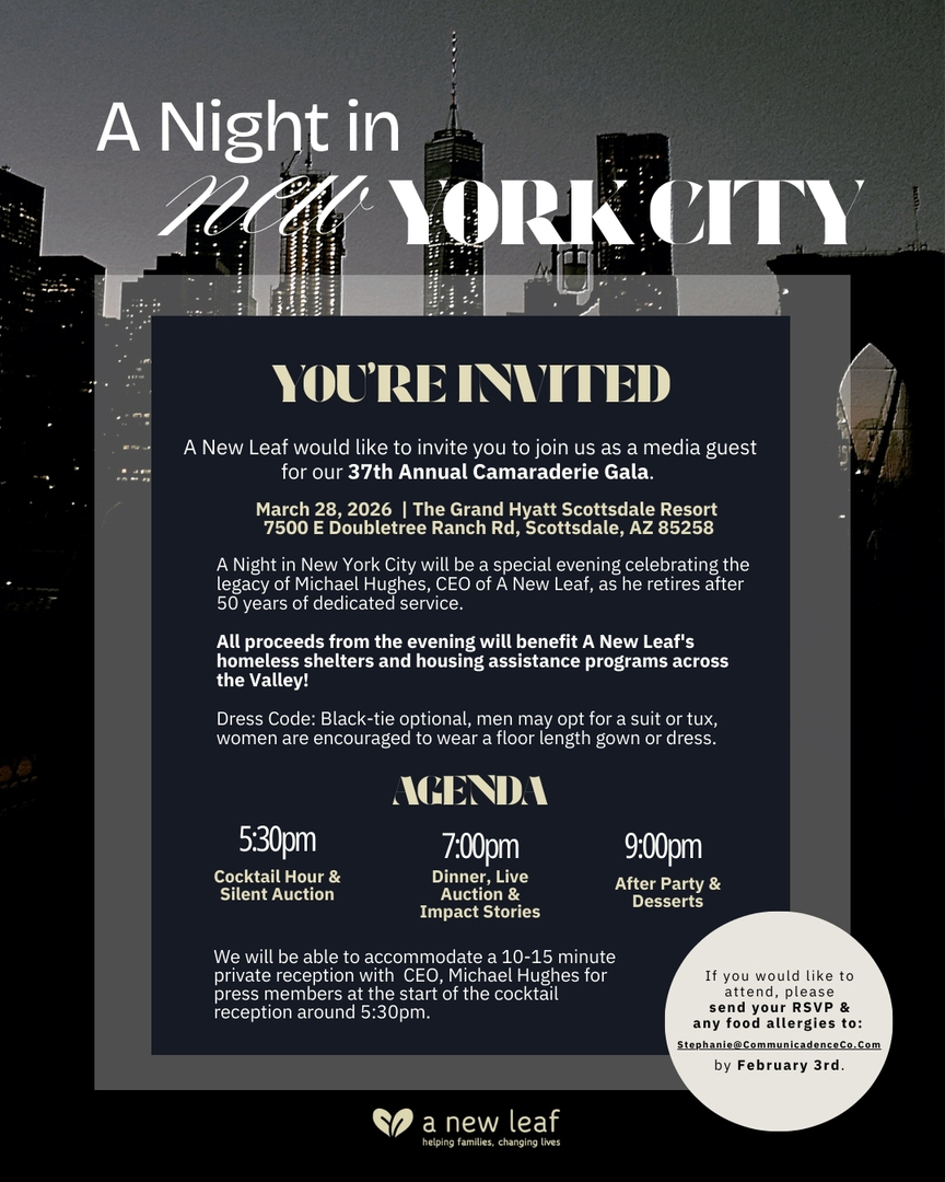 A Night in New York City will be a special evening celebrating the legacy of Michael Hughes, CEO of A New Leaf, as he retires after 50 years of dedicated service. This elegant, New York-themed gala will bring together business leaders, philanthropists, and community changemakers for a night of inspiration, Broadway-style entertainment, and meaningful impact. Guests will be transported to the magic of Manhattan while supporting vital programs for those in need.