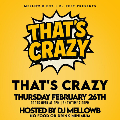 HomeEventsThat's Crazy! That's Crazy! Thursday, February 26, 2026 7:00 PM - 8:30 PM 7:00 PM - 8:30 PM See all dates and Times Stir Crazy Comedy Club Parking Deals Get a Ride LYFT UBER Add to Calendar 02/26/2026 07:00 PM 02/26/2026 08:30 PM America/Boise That's Crazy! That's Crazy! Event LinksTickets: https://go.evvnt.com/3408482-0 Details & Tickets: https://www.upcomingevents.com/phoenix/events/stir-crazy-comedy-club/thats-crazy-580285?ref=uceaddevent Stir Crazy Comedy Club, 6751 North Sunset Boulevard, Glendale, AZ, 85305 Set Reminder Categories Comedy, Comedy Show, Live Entertainment, Performing Arts That's Crazy! Event LinksTickets: https://go.evvnt.com/3408482-0