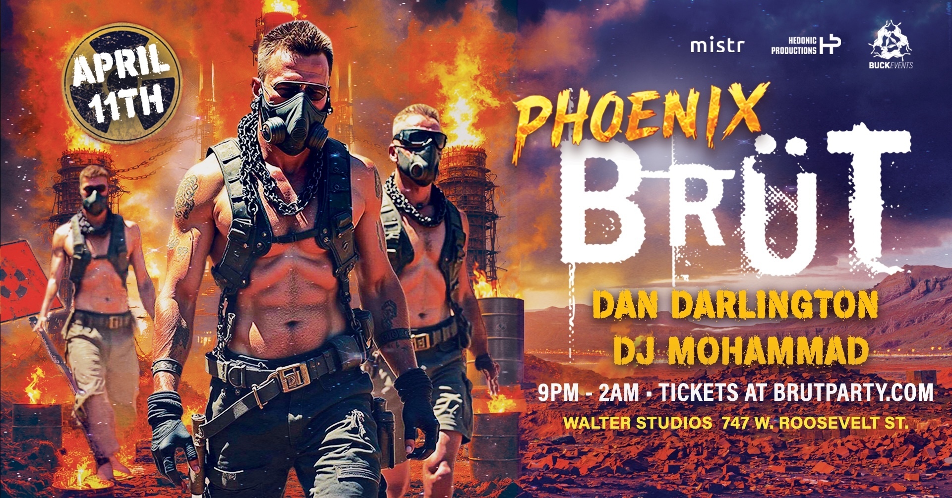 BRÜT lands at Walter Studios Phoenix for a night forged by heat, desire, and zero restraint. Post-apocalyptic energy, industrial darkness, and bodies moving with no rules. This is desert chaos after dark. Survive the night, own the heat and lock your tickets while they last.