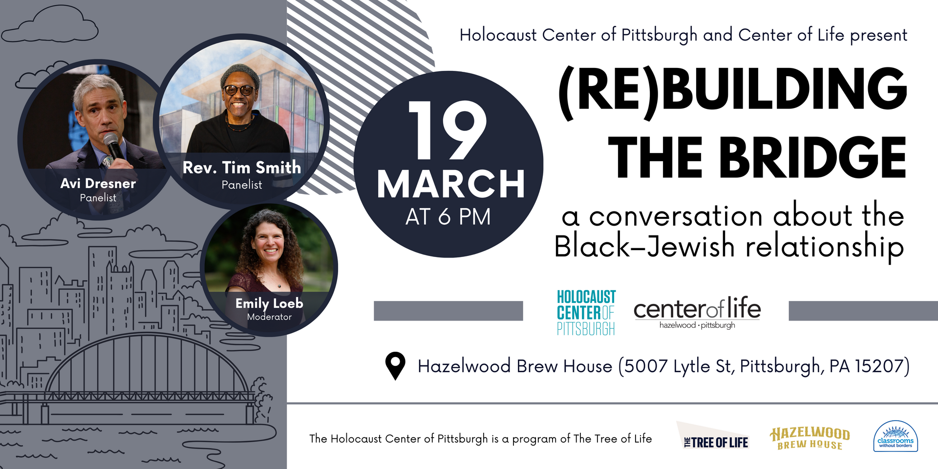 The program will center on a conversation between Center of Life's Rev. Tim Smith, and Avi Dresner, son of Civil Rights Activist Rabbi Israel “Sy” Dresner, and will trace the history of the African American-Jewish relationship during the Civil Rights Movement and explore ways to collaboratively address racism and antisemitism today. It will be moderated by Emily Loeb of the Holocaust Center of Pittsburgh, whose uncle Rabbi Everett Gendler was also a Civil Rights activist.