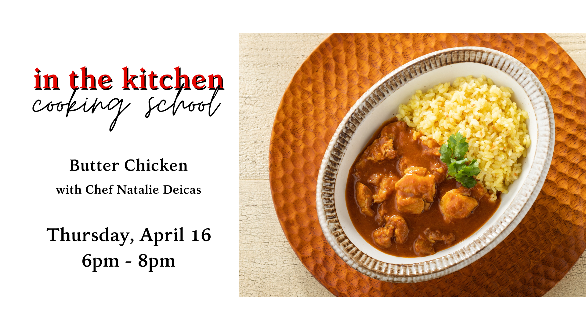 Dive into the rich, comforting flavors of one of India’s most beloved dishes in this hands-on Butter Chicken class! You’ll learn how to marinate and cook tender chicken, then build a silky, aromatic sauce layered with warm spices for the perfect balance of flavor.
