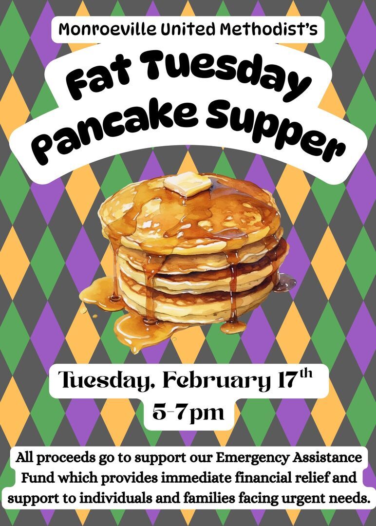 Our Fat Tuesday Pancake Dinner on Tuesday, Feb. 17, 5-7 pm, will include pancakes, sausage and beverage. The cost is $10 per person or $30 per family. Children 3 years old and under eat for free. Come join us for a pre-Lent meal for the whole family and help support our Emergency Assistance Fund.