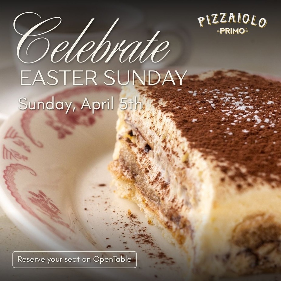 Reservations are encouraged for Easter Sunday. For more information or to book a table, visit Pizzaiolo Primo’s website or contact your nearest location.