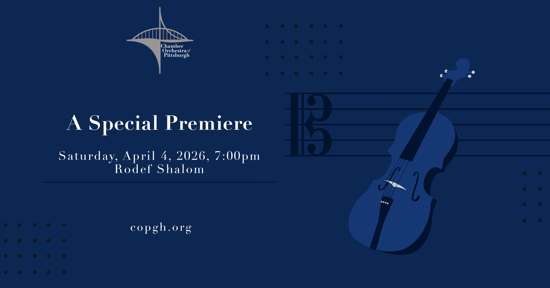 The Chamber Orchestra of Pittsburgh, with guest violist Tatjana Mead Chamis, will perform the world premiere of Yvar Mikhashoff’s Concerto for Viola on April 4, 2026, 7:00pm, at Levy Hall of Rodef Shalom. The program also includes two recognized masterpieces, Ravel’s Introduction and Allegro and Mahler’s Adagietto for Strings, as well as Khachaturian’s Gayane’s Adagio and Gymnopedie No. 1 by Peggy Glanville-Hicks.