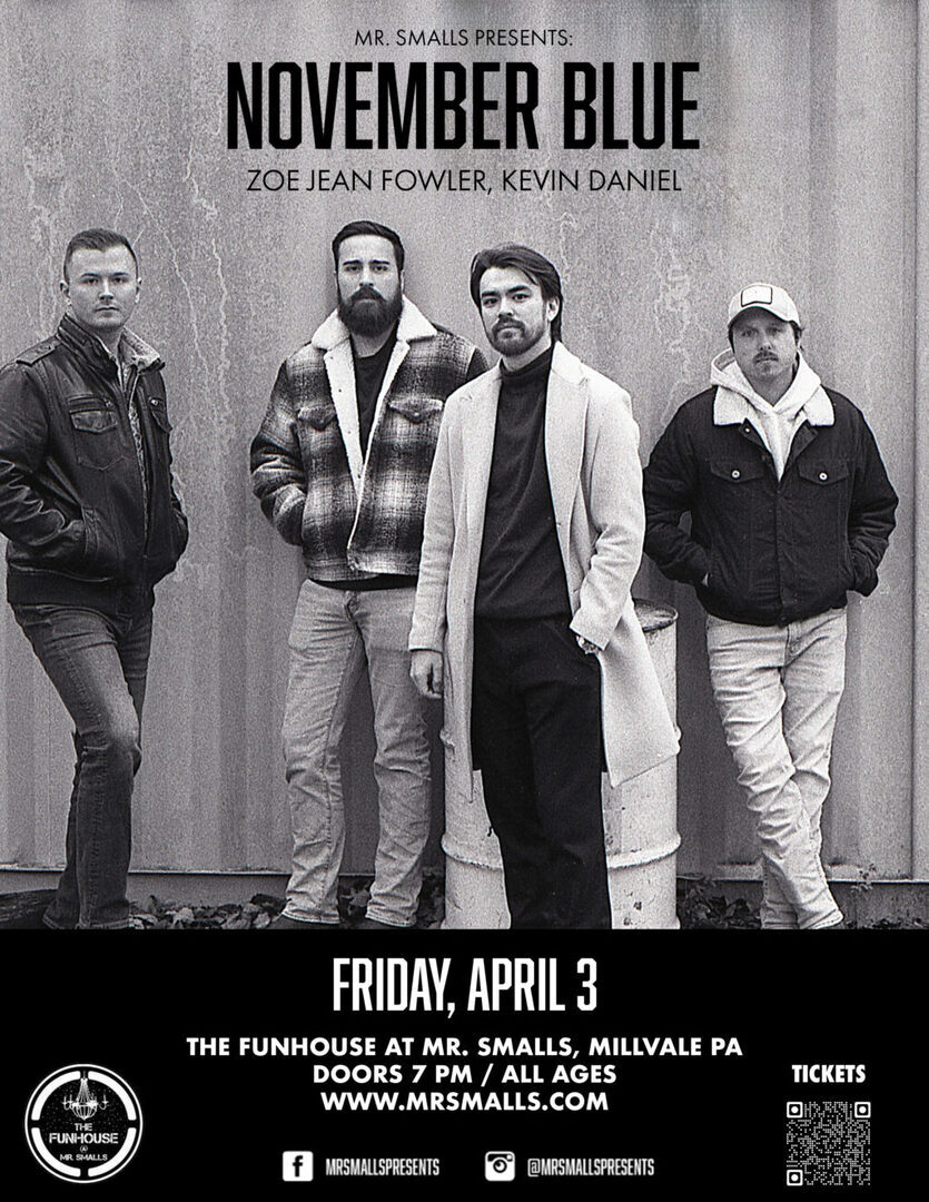 November Blue blends harmony-rich 60s/70s-inspired rock with modern country and roots energy, delivering powerful performances and emotionally compelling songwriting that resonate across generations. Originally from Pennsylvania and now based in Nashville, the band’s recent rise earned national recognition when Rolling Stone named them one of its “10 New Artists to Watch.” From working with Grammy Award–winning producer Michael Omartian to playing the Ryman Auditorium, November Blue continues to build momentum with new releases, unforgettable live shows, and a sound that feels both timeless and boldly current.