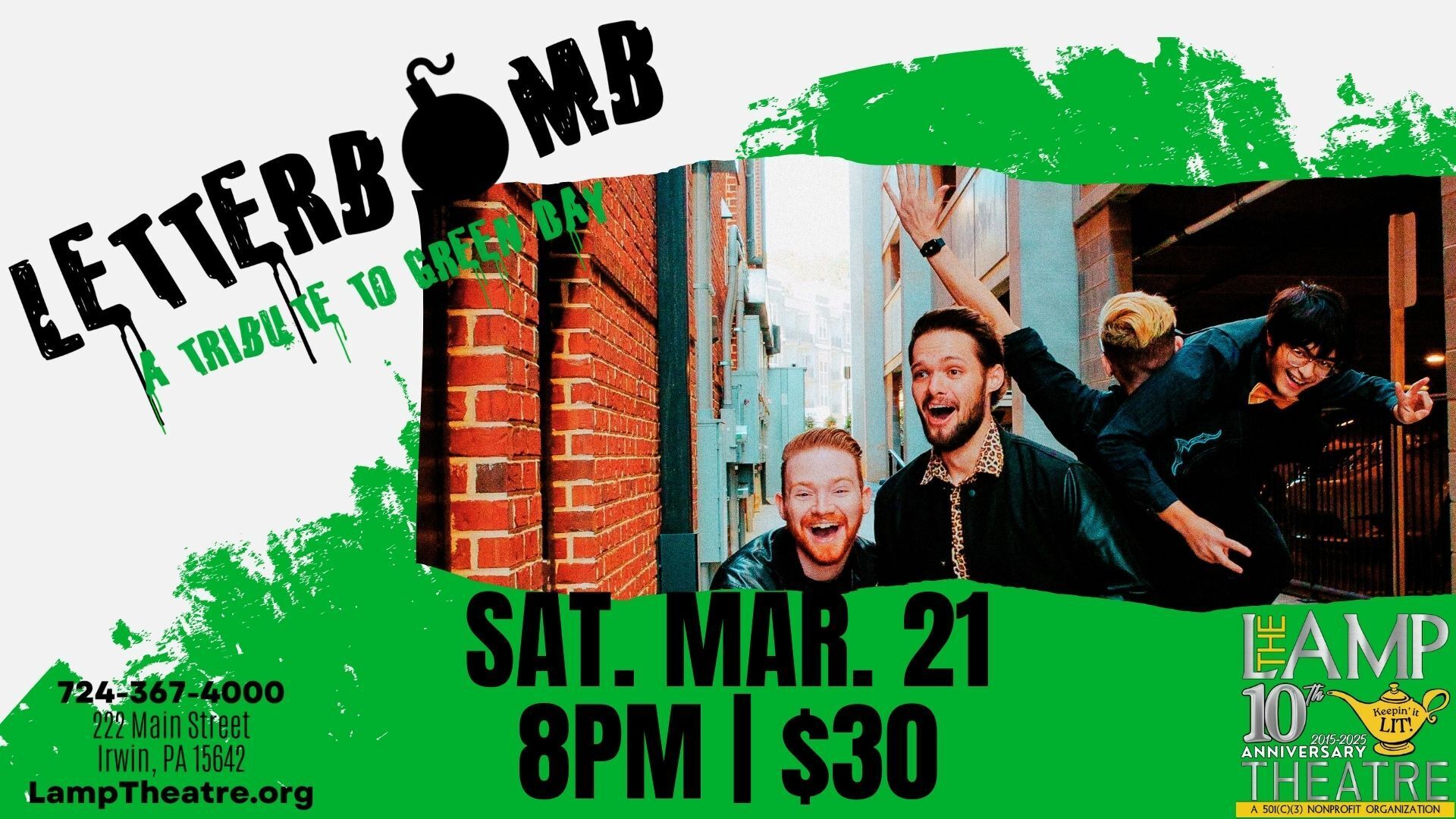 Get ready for a high-energy night celebrating the music of Rock & Roll Hall of Famers Green Day. Letterbomb delivers an explosive, spot-on tribute packed with the sound, style, and attitude that made Billie Joe Armstrong, Tré Cool, and Mike Dirnt icons. From “American Idiot” to “Holiday,” expect thunderous bass, driving drums, soaring vocals, and an interactive show that turns the crowd into part of the action.