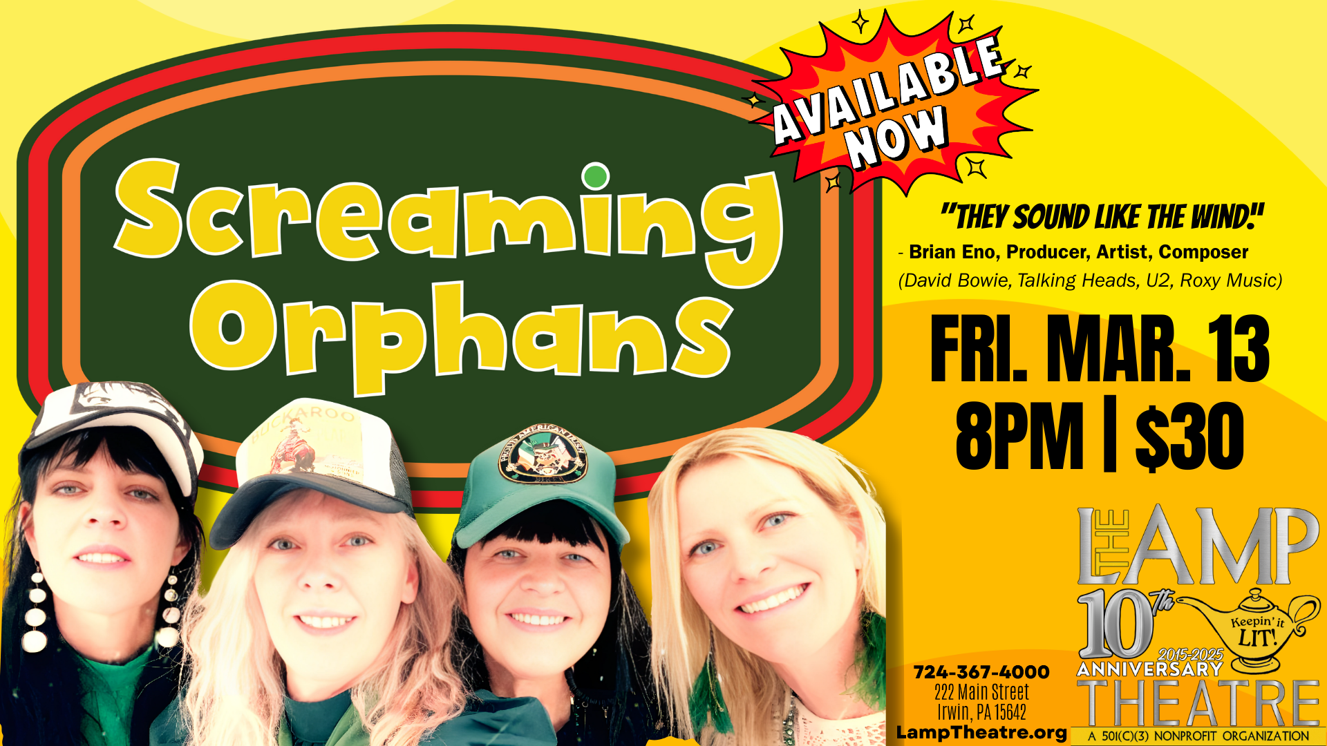Purchase tickets at [https://www.lamptheatre.org/screaming-orphans](https://www.lamptheatre.org/screaming-orphans)