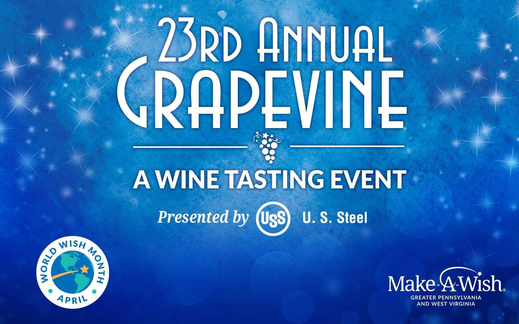 Join us on Thursday, April 30, 2026, from 6 to 8 p.m., at the Wintergarden at PPG Place for the 23rd Annual Grapevine – A Wine Tasting Event Presented by U. S. Steel, our local chapter's World Wish Month celebration in Pittsburgh.