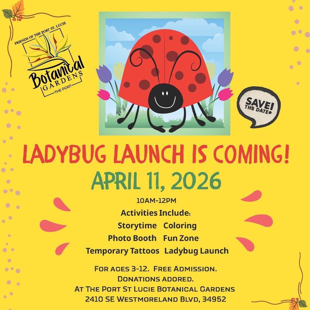 Bring the family for a morning of educational fun and join us at the Port St. Lucie Botanical Gardens on Saturday – April 11th, 2026 for our annual Ladybug Launch from 10:00am to 12:00pm.